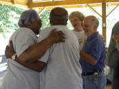 Sharing memories from years of laboring in the vineyard together. |